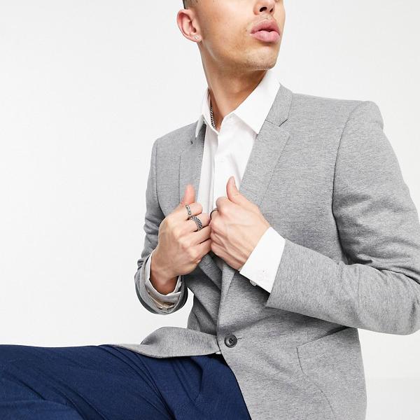 エイソス ASOS asos ASOSDESIGNスーパースキニージャージーブレザー(チャコール) アウター メンズ 男性 インポートブランド 小さいサイズから大きいサイズまで