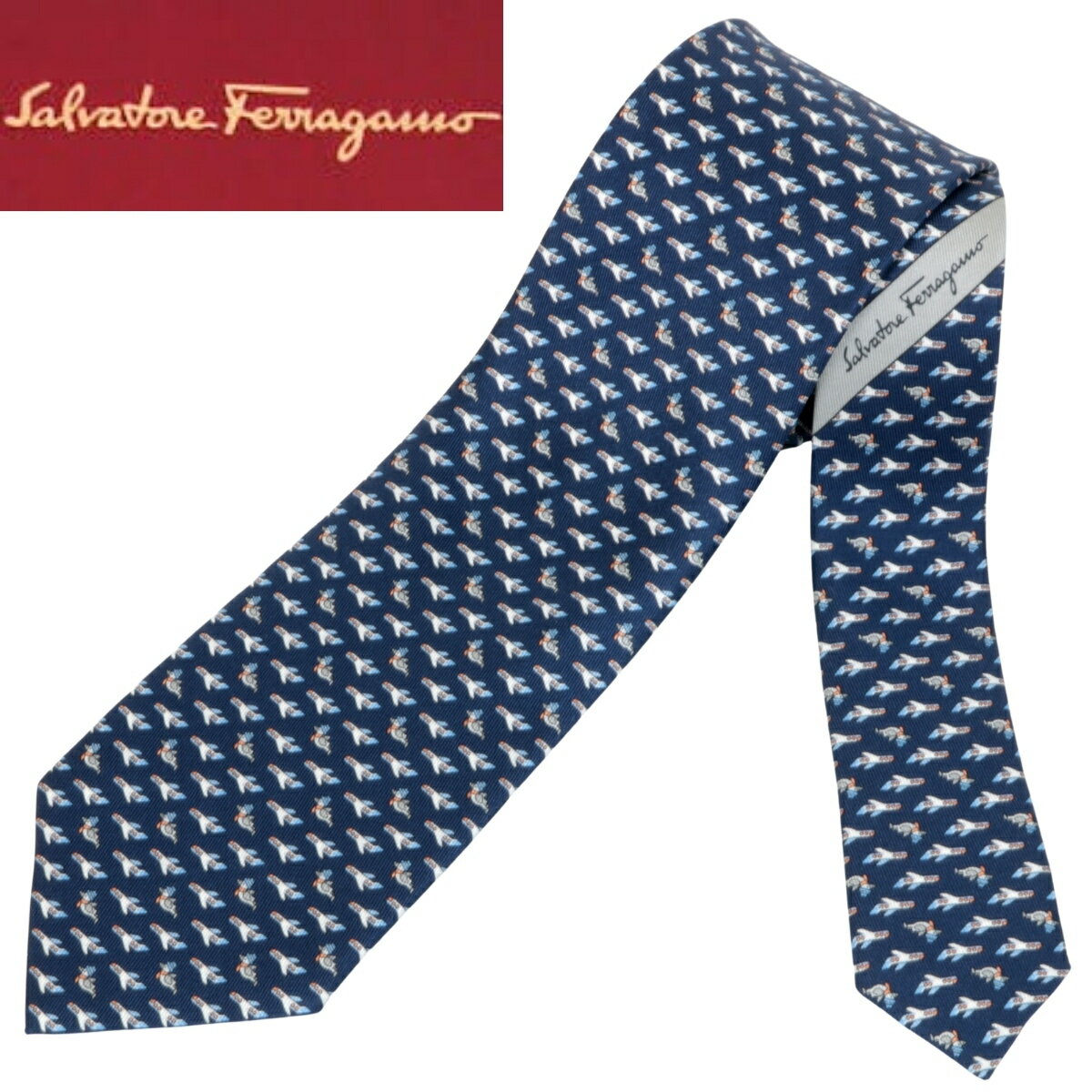 フェラガモ ネクタイ 飛行機柄 ネイビー sf1633 Salvatore Ferragamo ブランド プレゼント ギフト あす楽対応 クリスマス バレンタイン 父の日 シルク 新社会人 就職祝い フレッシャーズ 新生活 ビジネス 就活 おしゃれ 男性 メンズ 人気 高級