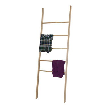 ハシゴ型の立てかけ木製ハンガーラック 幅60×奥38×高177cm オーク天然木 カントリー ブロカント アンティーク