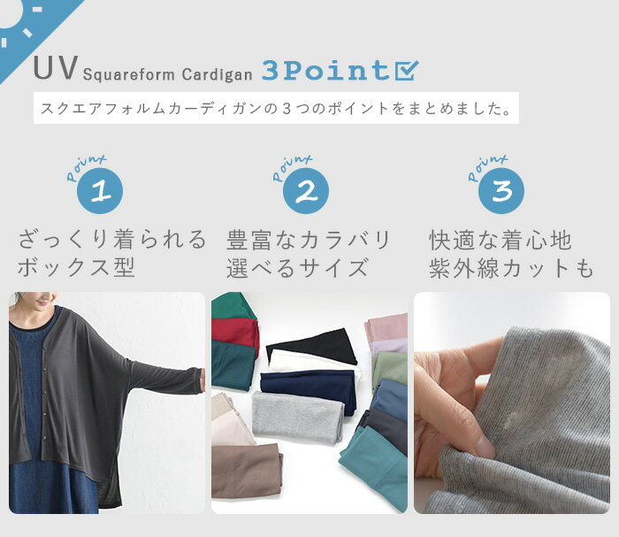 カーディガン UVカット 接触冷感 Vネック 【メール便可】 紫外線対策 ドルマン オフィス 冷房対策 ワイド トップス UV 30代 40代 50代 60代 UV対策 薄手 ゆったり 日焼け防止 長袖 大きいサイズ ナチュラル 春 夏 レディース ホワイト オートミール グレー チャコール ブラック ラズベリー モカ モカブラウン ライトグリーン グリーン ダルグリーン ターコイズ ブルーグレー ネイビー ライラック ピンクグレーゆったり、スクエアフォルム エコロコのUVカットシリーズから、スクエアフォルムのカーディガンが届きました。