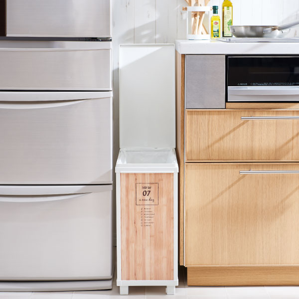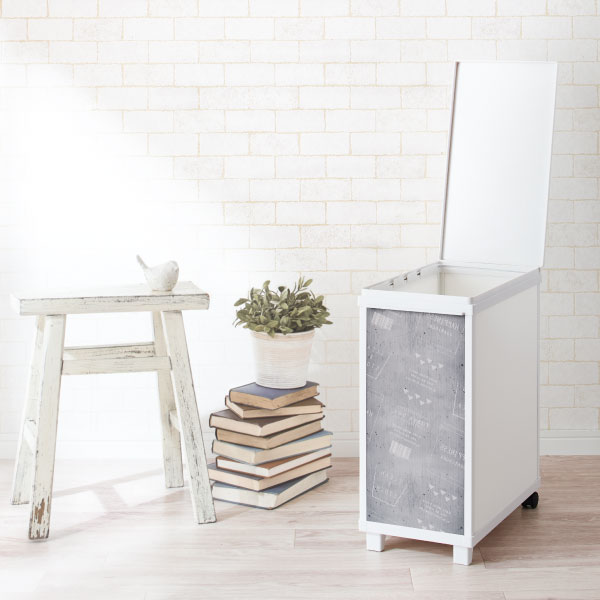 INTRODUCTION 商品紹介 コンパクトなプリント付きごみ箱をお探しの方へ 横幅24cm、奥行45cmと大変コンパクトなボックスなので、ごみ箱として使えば今まで活用できていなかったスペースを活用できます。