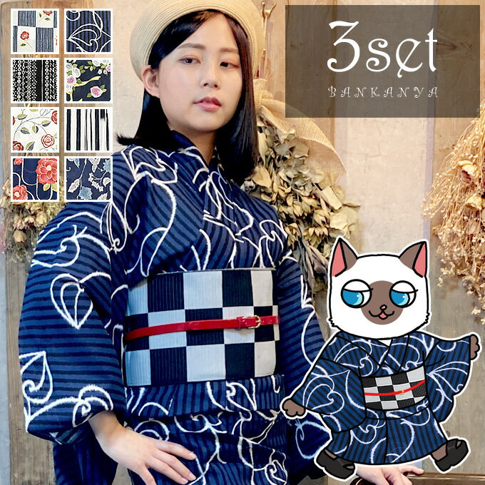 【8/19~8/22 10%OFF】浴衣 レディース セット 3点 選べる 8柄 当店 オリジナル 安い 初心者 OK 大人 クール 古典 大正 レトロ レディース シック モダン ストライプ 上品 白 黒 青 赤 黄 緑 紺 生成り 市松 薔薇 縞 椿 更紗 女性 高見え プレゼント 着付け 祭 花火