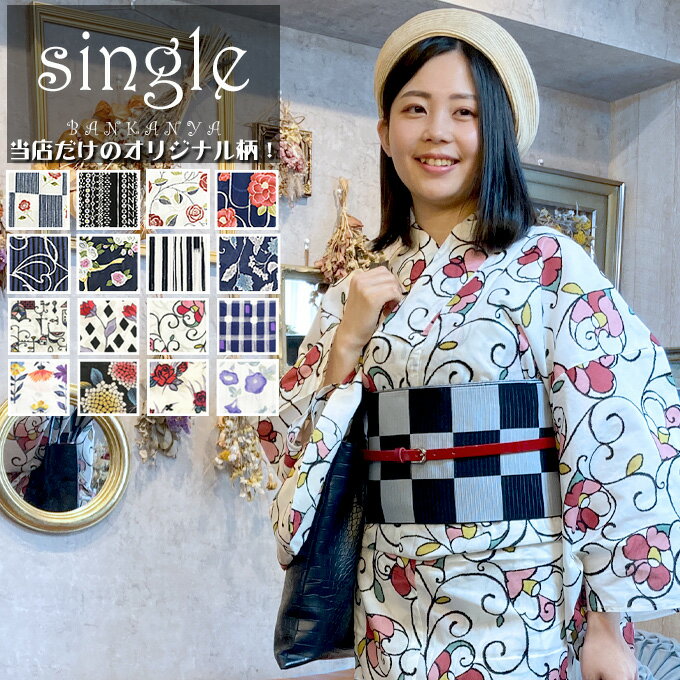 【8/19~8/22 10%OFF】浴衣 レディース 選べる 8柄 当店 単体 オリジナル 柄 単品 初心者 大人クール アンティーク シック モダン 大正 レトロ 古典 粋 白 黒 青 赤 黄 緑 紺 生成り 女性 市松 薔薇 縞 椿 更紗 映え プレゼント 着付け デート 祭 花火 ストライプ 個性