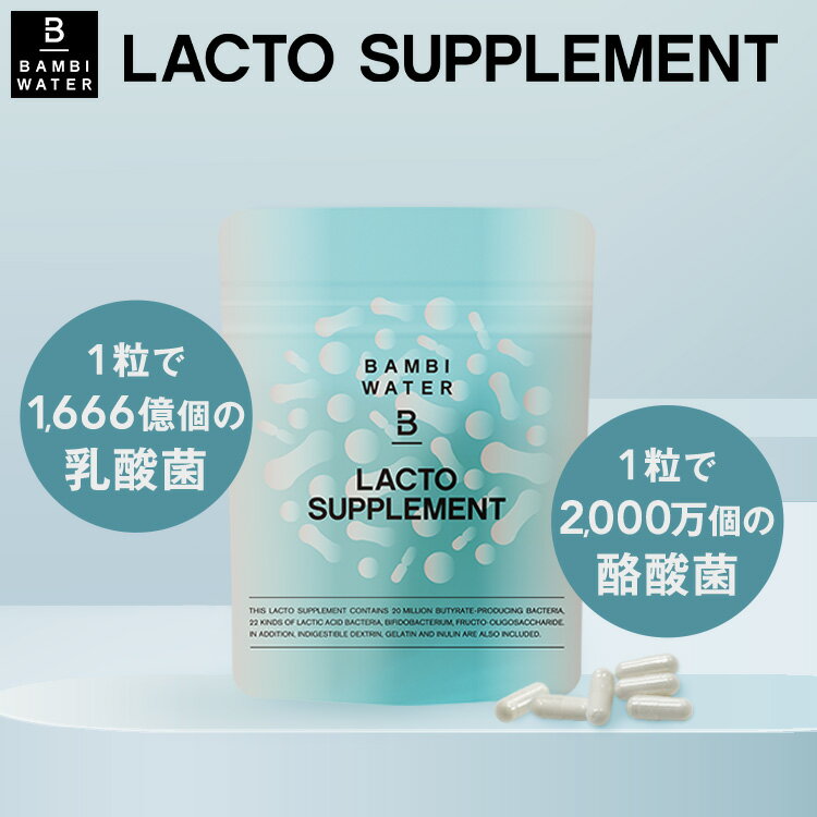 賞味期限 枠外下部に記載 成分表示 デキストリン(国内製造)、乳酸菌末(乳酸菌(殺菌)、デキストリン)(乳成分を含む)、酪酸菌末(コーンスターチ、酪酸菌)(乳成分・大豆を含む)、乳酸菌末(デキストリン、乳酸菌、ラクトース)(乳成分・大豆を含む)、フラクトオリゴ糖、イヌリン(食物繊維)、難消化性デキストリン、ビフィズス菌末(澱粉、ビフィズス菌乾燥原末)(乳成分を含む)/ゼラチン、ステアリン酸カルシウム、二酸化ケイ素 栄養成分表示 栄養成分表示 1粒(0.274g)あたり エネルギー1.04kcal、たんぱく質0.07g、脂質0.01g、炭水化物0.18g、食塩相当量0.0009g 生産国 MADE IN JAPAN メーカー希望小売価格はメーカーカタログに基づいて掲載しています 〈 クリックで拡大します 〉 ◇広告文責 【株式会社ラングレー・03-6450-2390】 ◇メーカー名【株式会社ラングレー】 ◇生産国 【日本製】 ◇商品区分 【健康食品】 【 バンビウォーター 】【 サプリ 】【 乳酸菌 】【 酪酸菌 】【 おうち時間 に 】【 メール便 】 おうち時間 ボディケア 誕生日 ギフト プレゼント 贈答 入学祝 進級祝 卒業祝 成人式 内祝 お返し クリスマス 正月 バレンタイン ホワイトデー 母の日 ハロウィン 新生活 夏休み お盆